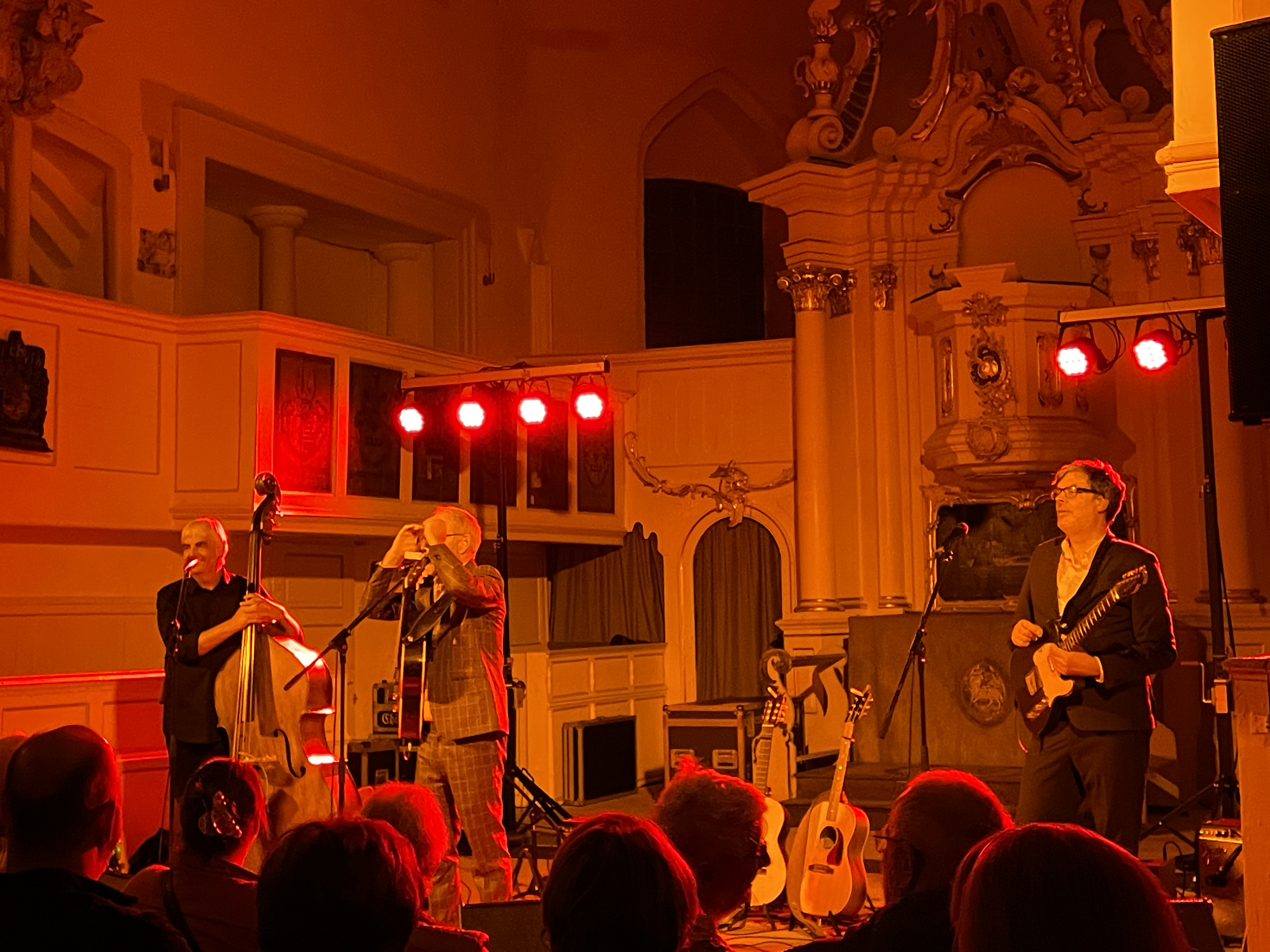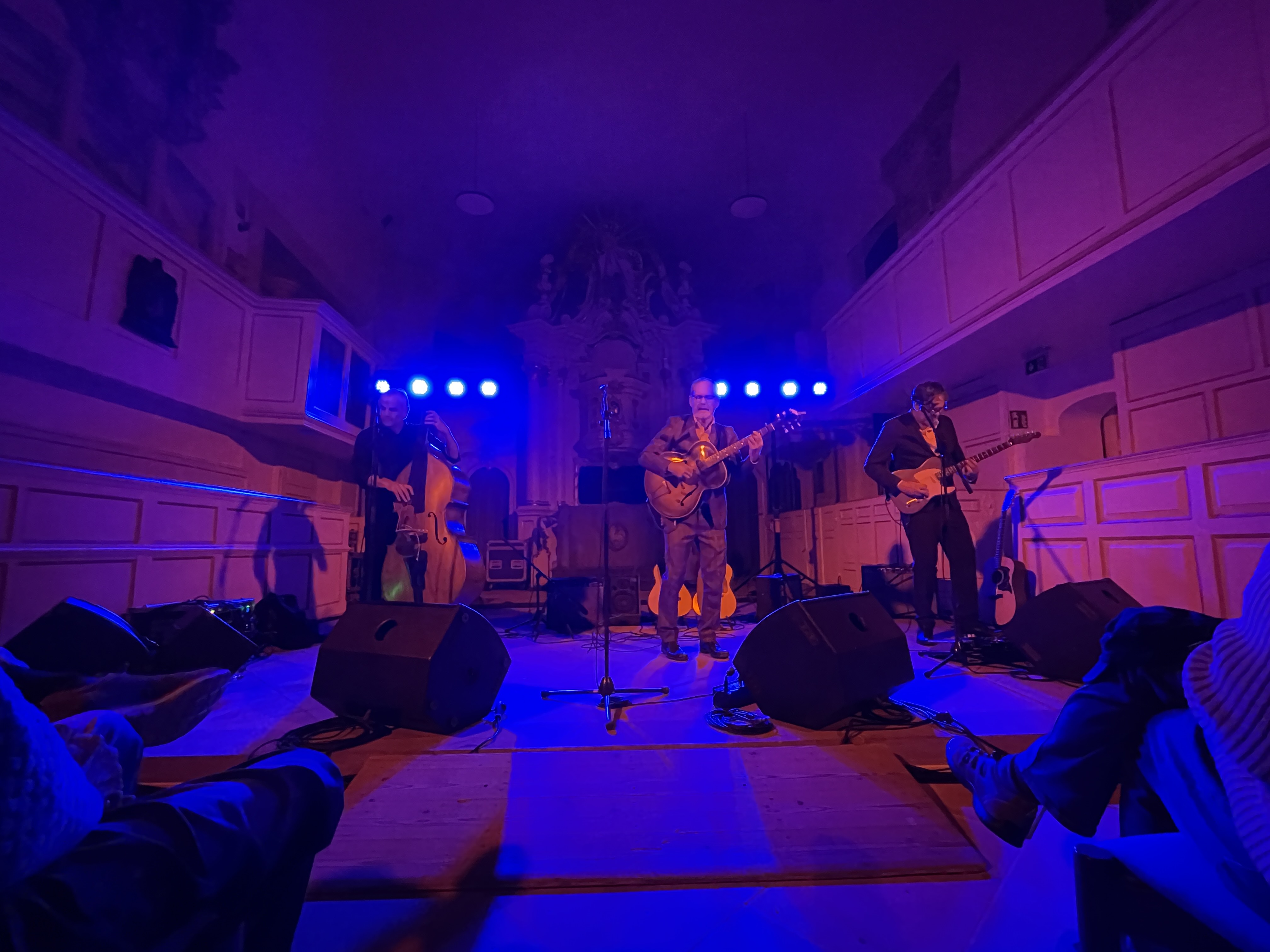 Begleitet wurde der sympathische Künstler und Sänger, der selbst verschiedene akustische Gitarren bespielte, von Thomas Biller am Kontrabass und Johannes Wennrich an der E-Gitarre. Zusammen belebten sie temperamentvoll die unterschiedlichen musikalischen Stilrichtungen und überzeugten durch teilweise dreistimmigen Gesang.